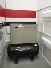 (Below) A Mattei energy-saving air compressor with built-in air dryer and special horizontal 90-gallon tank was placed in a sound enclosure to minimize noise. Attention to details makes this an extraordinary shop.