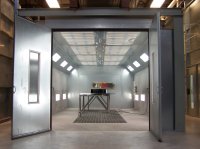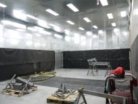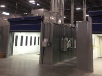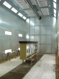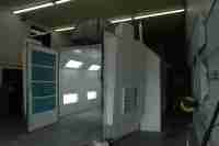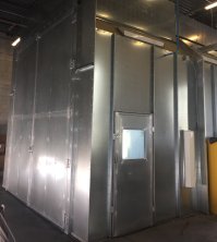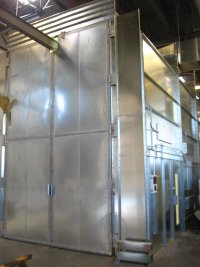 | The existing building was expanded, and an open face industrial booth was moved to a new location in the shop. A second used open face booth 13' W x 7' H was purchased.