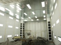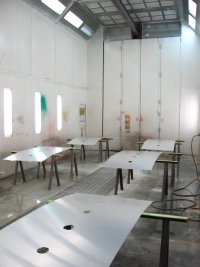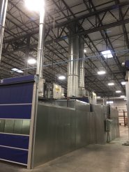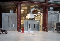 | The project included a used Spray Systems semi-downdraft paint booth. An Infratech infrared curing system allows pre-heating of the metal before painting and curing cycles.