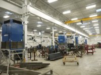 (Above) The welding area comprises approximately 20% of the space. Four Clark Air Revolvers ensure a clean working environment by capturing dust and welding smoke, in compliance with the EPA's "6X" rule. After filtration, these energy-efficient units return heated air to the shop rather than venting to the outside.
