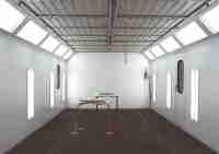 (Above) As part of a March 2008 upgrade, a heated downdraft Spray Tech booth and cutting-edge Mercury air make-up unit were installed. Dual variable frequency drives save energy in both spray and bake cycles.