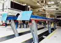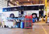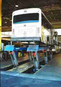 Stands can be placed under the bus, allowing the columns to be moved for lifting a bus in another bay. | |