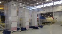 When is a paint booth not a paint booth? When it's a Mobile Limited Finish Work Station. A combination of three Freedom RV mobile carbon prep stations allow the user to deploy the units anywhere they're needed. The entire side of a train car can be painted in three sections.